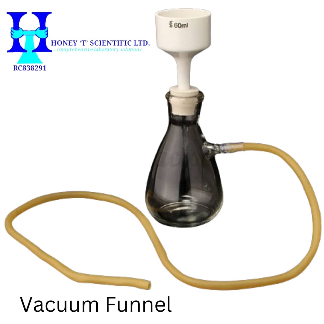 Vacuum Funnels allow you to filter liquids by pulling them through qualitative filter paper and perforations in the top of the funnel using a vacuum pump.