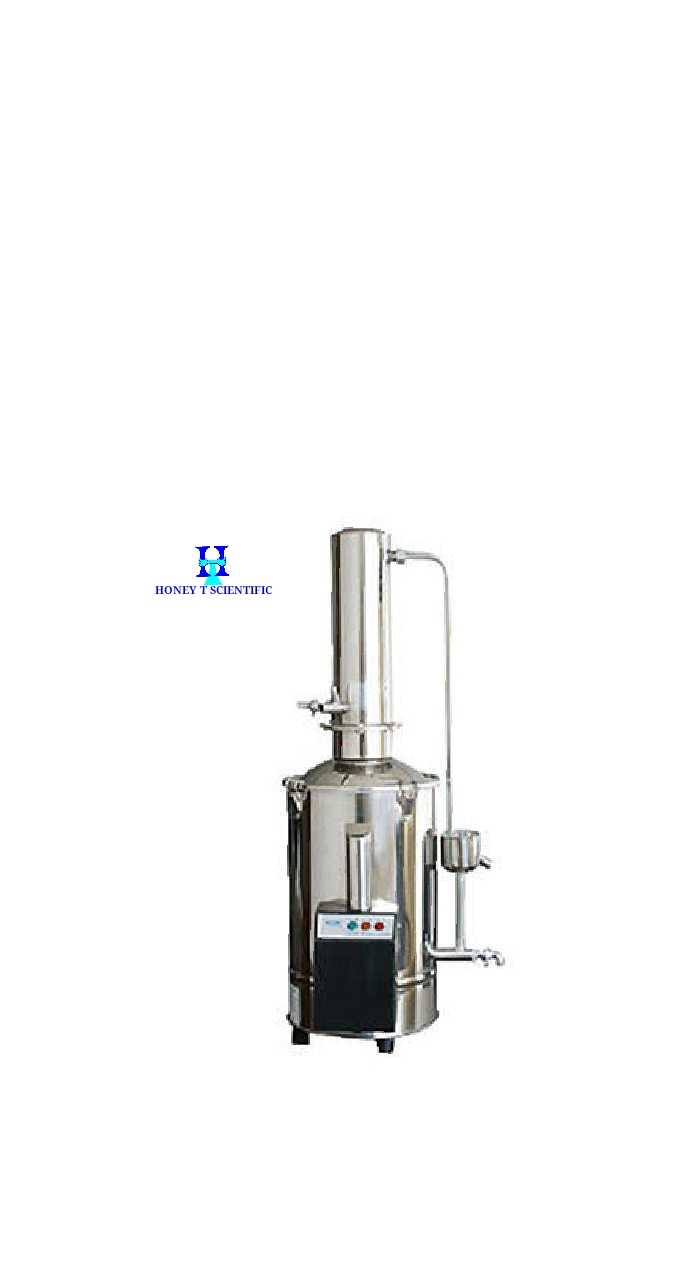 A water distiller is a water treatment method that produces contaminant-free water by converting water into vapor before condensing it and returning it to a liquid state. During the evaporation process, impurities like bacteria, heavy metals, and arsenic are eliminated because they are unable to turn into steam. As the water transitions from a liquid to a gaseous state, these contaminants are left behind in the boiling chamber. The distiller then cools the evaporated water, returning it to its liquid state as a mineral-free, highly pure water. This distilled water is used in the laboratory, organic chemistry laboratory, clinic, fermentation and medical industry e.t.c